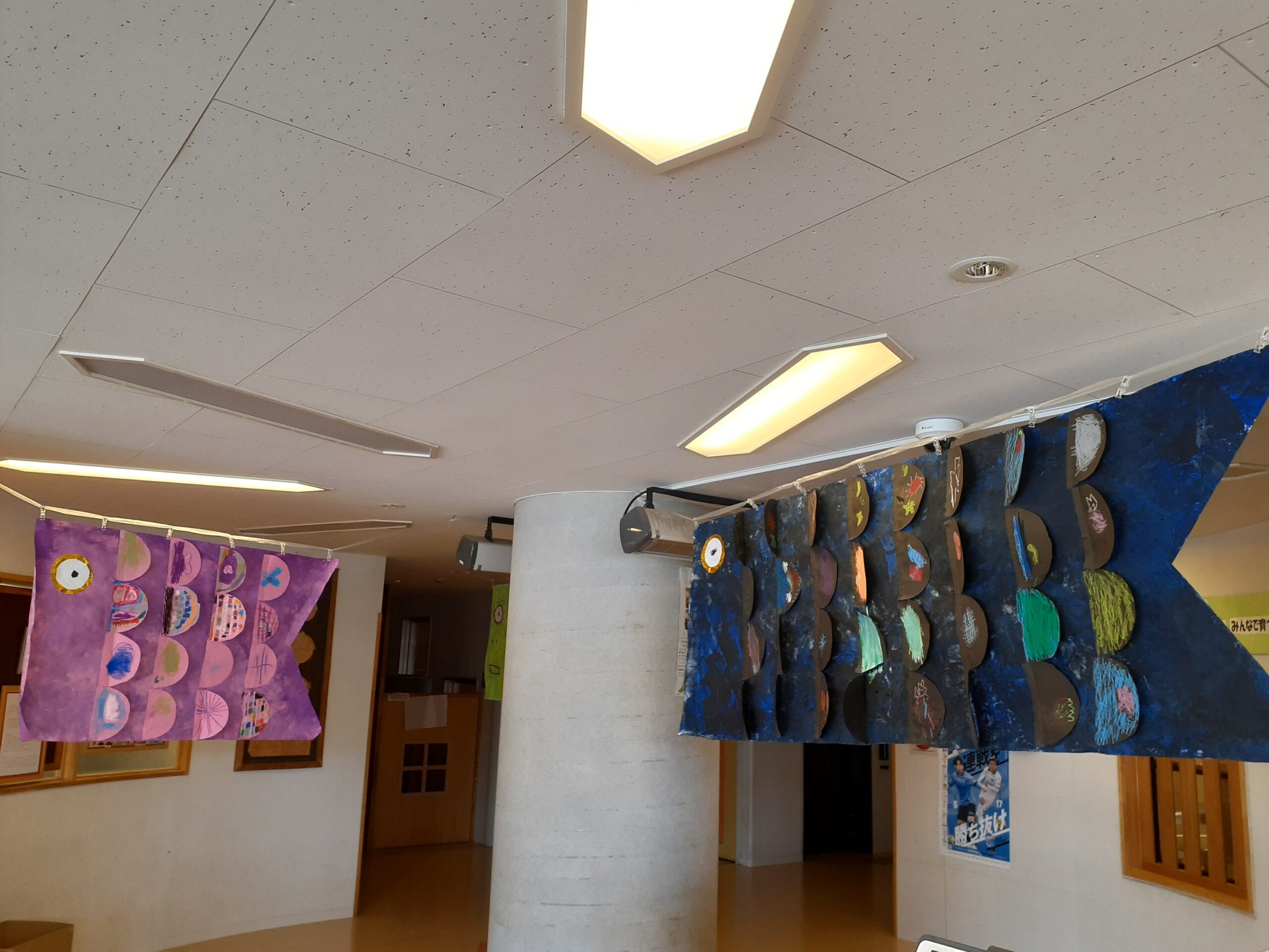 さぎ沼なごみ保育園の玄関には子どもたちお手製のこいのぼりが泳いでいます。