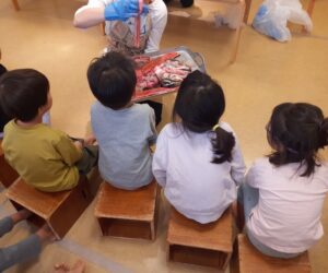 さぎ沼なごみ保育園の幼児クラスで、秋の旬でもある大きな鮭の解体ショーを行いました。