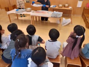 子どもの反応は様々で、包丁が入る度に「きゃ~」と反応する子、固唾を飲んで見守る子、中には「かわいそう」と話す子もいました。