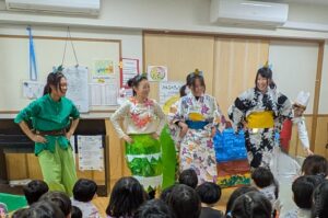 今月のお楽しみは職員の創作劇でした。お雛様やピーターパン、ティンカーベルにコックさんと登場人物も沢山で目が離せない様子の子どもたちでした☆